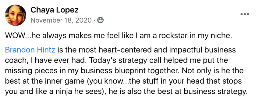 Once you have a powerful mindset and the tactics to confidently take action, Brandon gives you the HOW better than anyone with the "Client Attraction" Tribe Accelerator software that gives you the tools to immediately implement without delays or complication!! Plus you will have hands on support and mentorship from Brandon, AND the entire community of fellow High Impact Coach members.